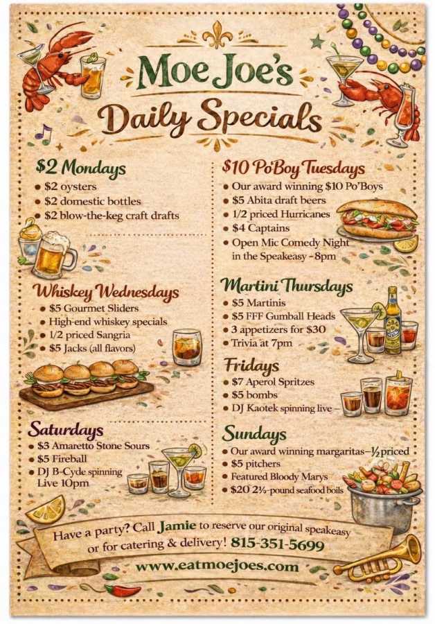 Carryout (815) 230-2790Hours: Sunday - Thursday 11 A.M. - 1 A.M., Friday & Saturday 11 A.M. - 2 A.M.